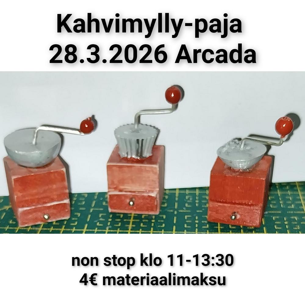 Tapahtumasta löytyy juhlavuoden kunniaksi nukkekotinäyttely ja kahvimylly-paja. Tule tekemään itsellesi kahvimylly 4€ materiaalimaksulla klo 11-13:30 non stop.
