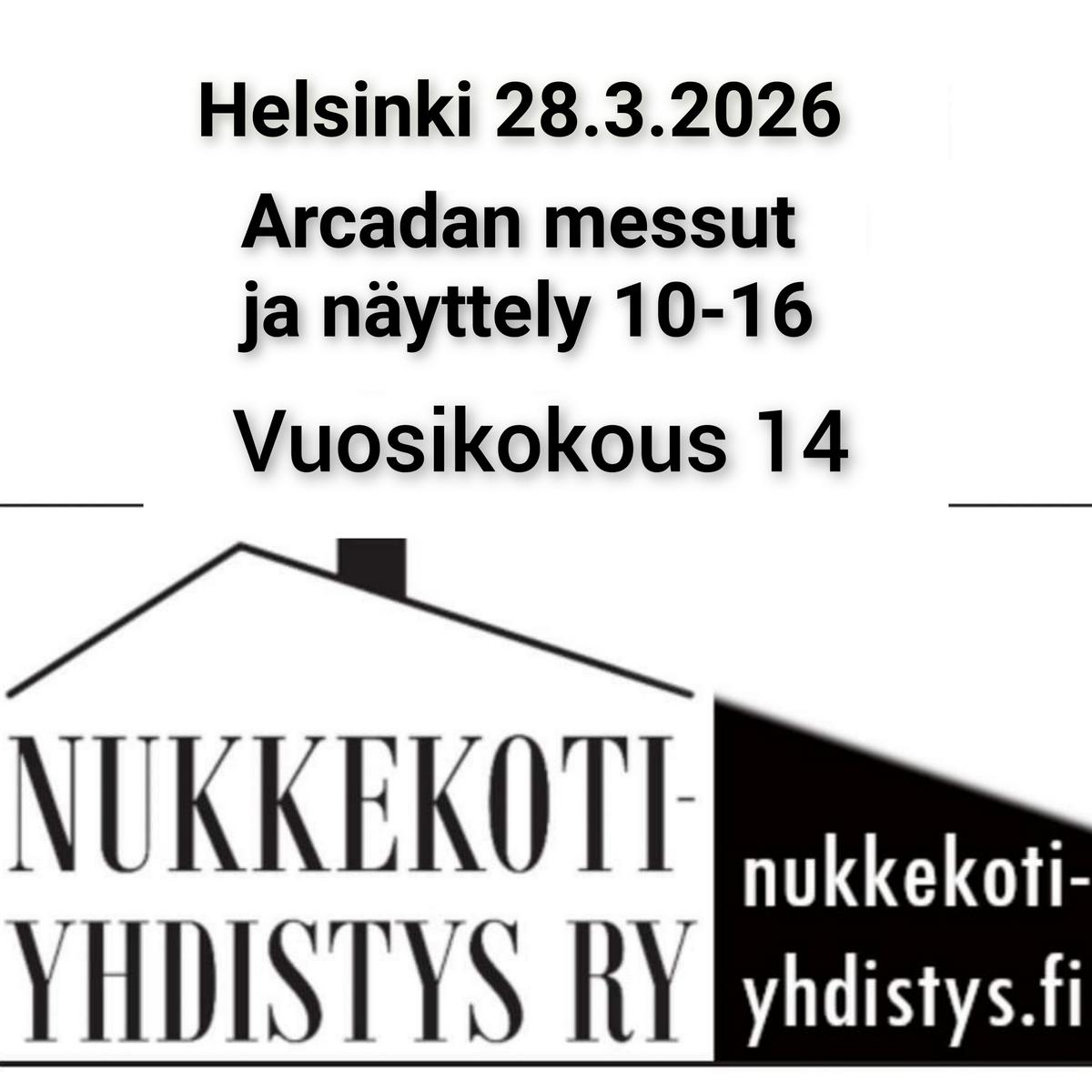 Nukkekotiyhdistyksen vuosikokous pidetään lauantaina 28.3.2026 klo 14.00 Koulutuskeskus Arcadassa, Jan-Magnus Janssonin aukio 1, Arabianranta, Helsinki.